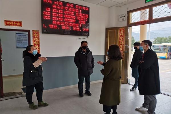 督查组在展茅公交车站检查公车站疫情防控措施落实情况