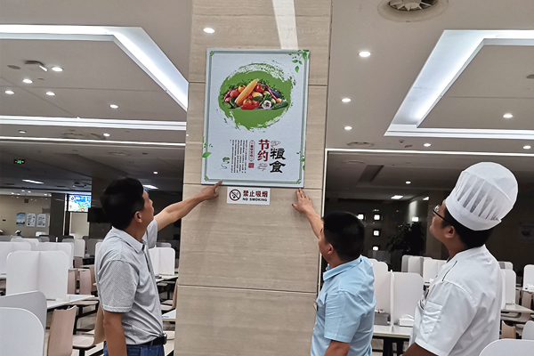 走进食堂大厅,米白色的墙面、柱子上张贴着一幅幅“节约粮食”的宣传画,滚动的电子屏幕上显示着“光盘”行动的宣传标语。“我们食堂严格遵循‘厉行节约、反对浪费’理念,严控食材、食物浪费,在菜品制作中合理利用食材余料,杜绝‘刀下’浪费;推行分批就餐制、分批出餐制,减少食物浪费;建立完善的垃圾分类投放、收集、运输、处置体系,循环利用厨余垃圾。”普陀区机关事务管理中心相关负责人表示,我们还向行政中心48家入驻单位发起‘光盘’行动倡议,受到了大家的欢迎。