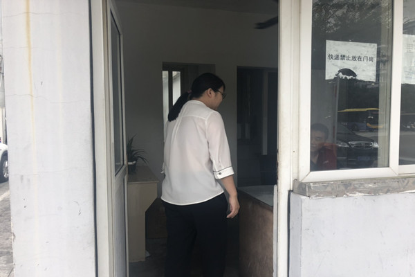 驻区经信局纪检监察组检查人员对被监督单位门岗节日礼品存放情况进行检查